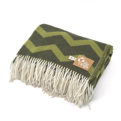 The fabric of these yoga blankets is made from 20% wool, 50% acrylic, 25% polyester and 5% other fibres, all recycled!